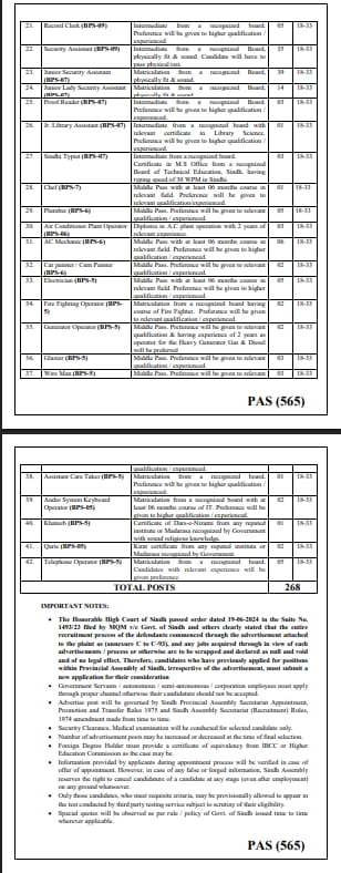 | Sindhi Typist | 07 | Inter + MS Office + 30 WPM Sindhi Typing |